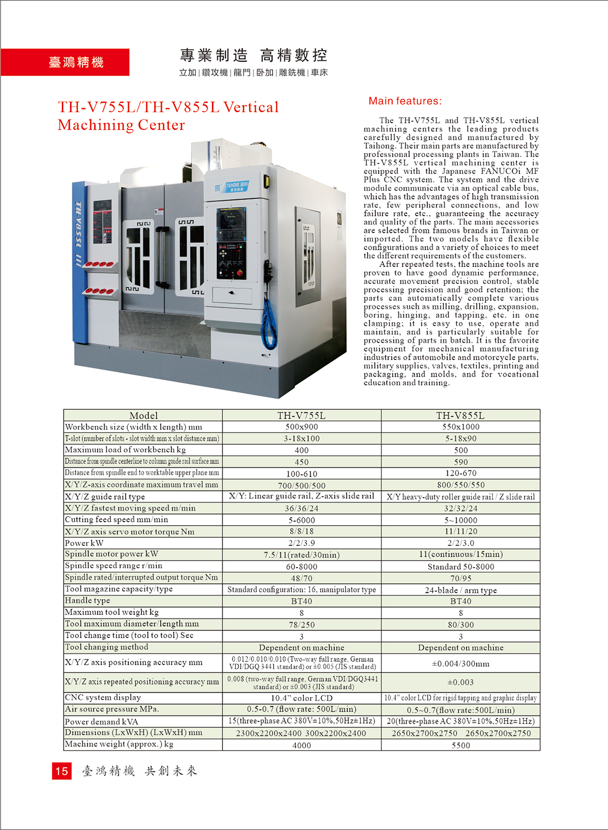 TH-V855L立式加工中心